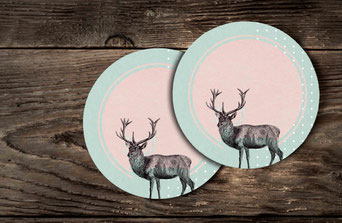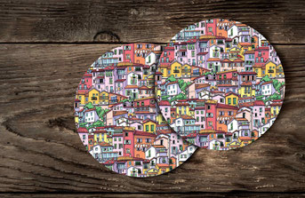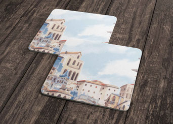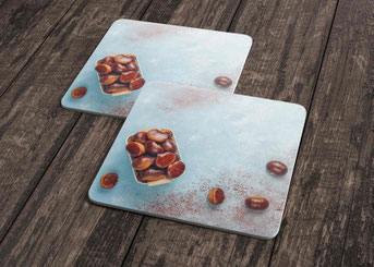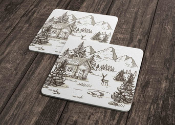 Alle Sujets sind auch als Getränkeuntersetzer, 150 gm2 Daunendruck-Papier, rau, superweiss, erhältlich.