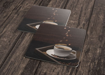 Bierdeckel rund, Durchmesser 107 mm oder quadratisch 93 x 93 mm, Druck einseitig 4-farbig, 1.2 mm Bierdeckelkarton, innert 48 Stunden geliefert.